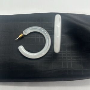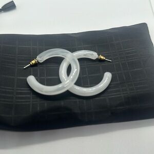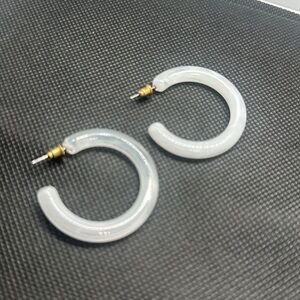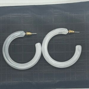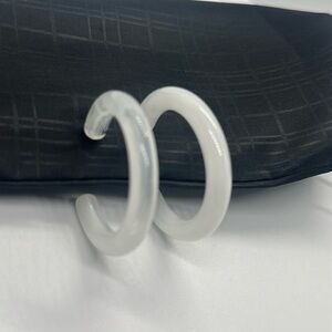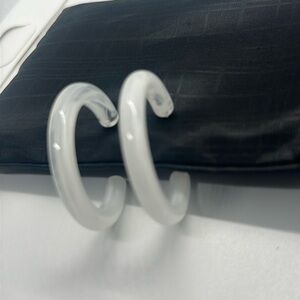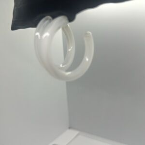 Elevate your style with these stunning brand new, chunky white acrylic hoop earrings! These statement hoops feature a beautiful, opaque white finish with a subtle marbled effect, giving them the chic look of lucite or resin without the weight. Perfect for adding a touch of modern elegance to any outfit, from casual denim to a sophisticated evening look.