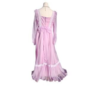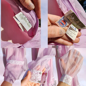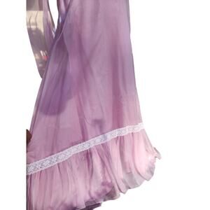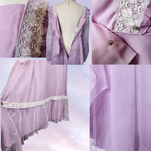 Vtg Vintage Sylvia Ann 50s 60s 70s Union Made Romantic Lavender Lilac Pastel Wedding Bridal Formal Mother of Bride Coquette Doll Baby Shower Retro Holiday Whimsical Dainty Frilly Prairie Cottage Dress. An absolute beautiful ILGWU made princess style dress. Features white lace trim detailing, a giant cute bow in back that has a snap button to undo so you can full unzip the dress. Each cuff has snap buttons as well.