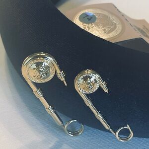 NWT VERSACE VELVET PADDED BLACK HEADBAND SIGNATURE GOLD MEDUSA HEAD SAFETY PINS