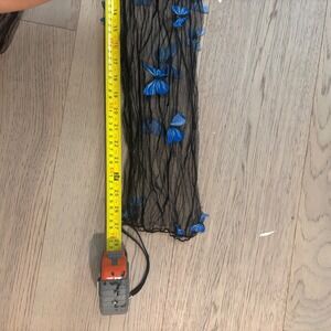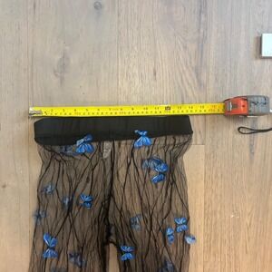 These elegant black sheer pants feature beautiful blue floral accents, perfect for adding a touch of sophistication to any outfit. Ideal for special occasions or a stylish night out.