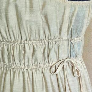 Blu Pepper brand Bohemian Style Smocked Tiered Maxi Sundress in Cream/Champagne color textured fabric. Empire waist and tiered skirt flow with your movements. Bows at sides can be tied in front or back as well. Fully lined (except top back). Adjustable straps for fit & comfort. Rayon/Nylon/Polyester blend, hand wash. EUC, worn only once for beach wedding.