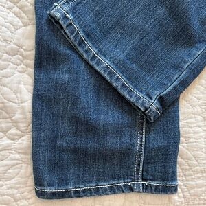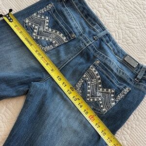 Stylish boot cut jeans by Earl Jeans. Features intricate embroidered back pockets. Perfect for everyday wear.