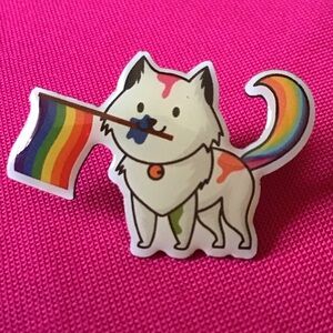 Celebrate love and pride with this charming pin featuring an adorable white cat proudly holding a vibrant rainbow flag in its mouth. This delightful accessory is perfect for showcasing your support for the LGBTQ+ community while adding a touch of fun to your outfit or bag. Made with high-quality materials, this pin is durable and designed to stand out, making it an ideal gift for cat lovers and allies alike. Wear it with pride and let your personality shine!