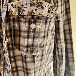 MNG by Mango Brown and Cream Plaid Button-Down Shirt