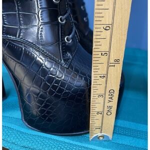Azalea Wang Black Crocodile Boots, size 10 Studs Chains Platform Pearls