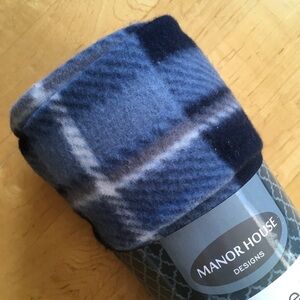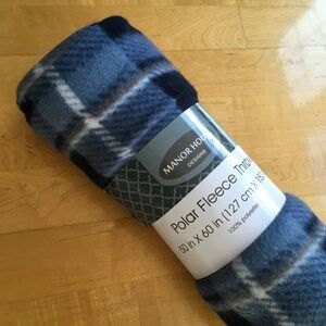 Nice polar fleece throw in navy blue plaid. Great one to grab if you need extras around the house, for the car, travel bag or to give as a gift! From Manor House. ๐