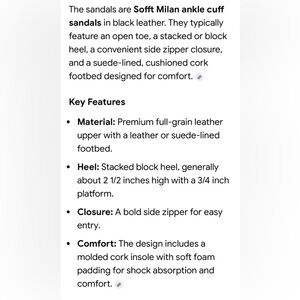 Sofft Milan Black Leather Side Zip Ankle Cuff, Open Toe Sandals. Brand New.