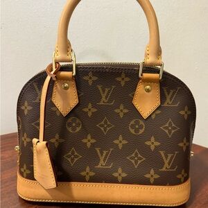 Louis Vuitton Alma BB. Like new conditions. No tears only water marks on tan color. AUTHENTICITY FROM PROAUTHENTICATORS