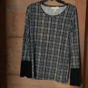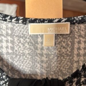 Michael Kors Tweed Print Blouse Top – Black & Cream Long Sleeve, Size Medium