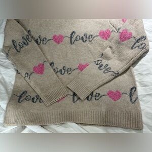 Brand new with tags! Beautiful & very soft women’s sweater by cupcakes & cashmere, size large, featuring a love/heart design. Made of polyester, acrylic, other fibres & nylon. Please view last 2 photos for laying flat measurements size visual- pit to pit approx 23 inches & top to bottom approx 25.5 inches.
