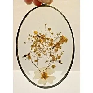 Vintage OvalBeveled Glass Dried Flowers Gold Frame Hanging Wall Decor 6.”