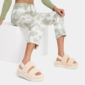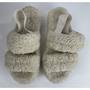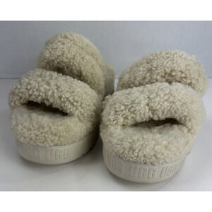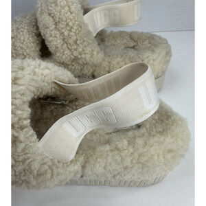 Ugg Oh Fluffita Sherpa Platform Sandals Natural Beige Sheepskin Size 11 Slides