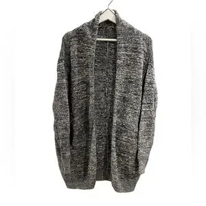 Cozy gray cardigan. Open front design. Soft knit fabric.