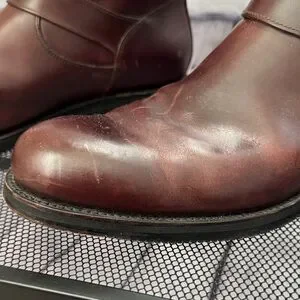 Any leather marks should be noted in pictures and the video. The soles are in great condition and have plenty of wear left. This is a very rigid boot and looks great with casual wear as well as a little dressed up.