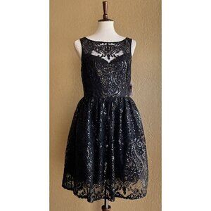 BB Dakota Tate Sequin Lace Fit And Flare Dress Black Size 8 A19