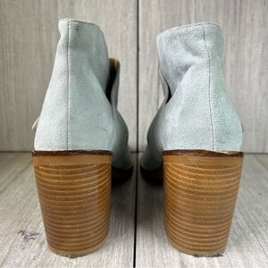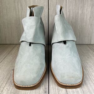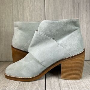 Shelly’s London Blue Suede Leather Ankle Booties Strap Block Heel Women's Size 7
