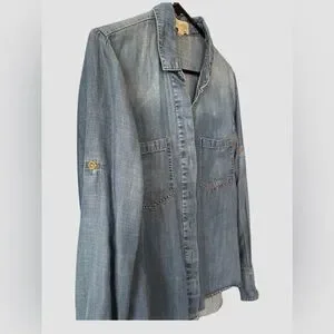 Cloth & Stone Anthropologie Size M Chambray Denim Button Front Shirt Split Back