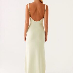 New with tags! Peppermayo Exclusive Anastasia Maxi Dress in sage. Made with a stretch knit material and featuring a low V-neckline, low back, and twisted straps. Perfect for elegant occasions!
