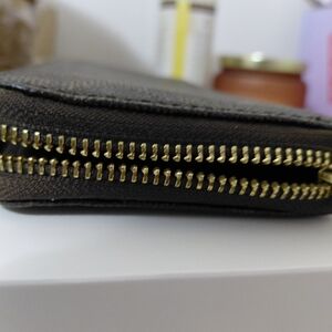 Elegant Michael Kors wallet in dark brown. Features a metallic gold logo plate.