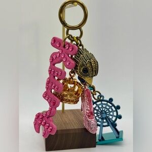 • Charms Include - signed pink high heel shoe with rhinestones & eagle head accent, signed blue ferris wheel with moving parts, golden 3D crystal encrusted crown, pink "Kurt" cutout with rhinestones, and signed metallic eagle head with rhinestones and black bead eyes.