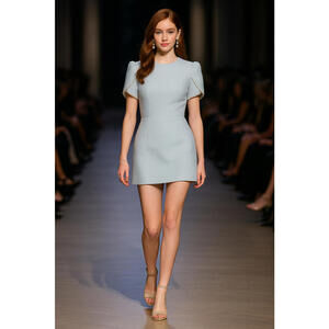 The product is a stylish Ashley Lauren dress in a size 2, featuring a solid blue tweed fabric with a cute bow detail and puff sleeves. This short dress is suitable for various occasions such as travel, weddings, parties, and formal events. Made of polyester, the dress has a zip closure and is perfect for the seasons of summer, fall, and spring. With its short length and mini style, this dress is a fashionable choice for any woman looking for a versatile and chic outfit.