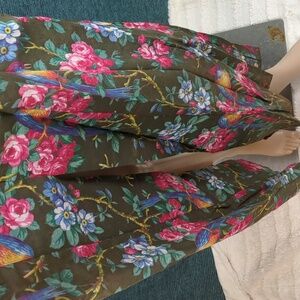 It is a beautiful green, with pink and blue flowers and a very pretty bird.