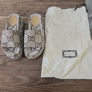 Gucci Angelina Maxi GG Platform Slide Sandals #623212 Size 37.5 Us 7.5