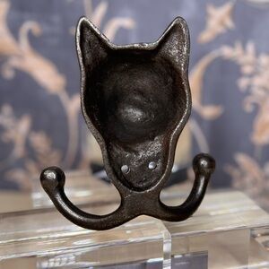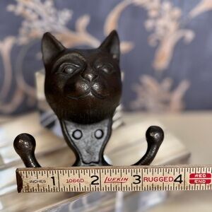 The Vintage Cast Iron Double Cat Hook is a reproduction piece crafted from durable cast iron in a classic black color. This hook is designed to hold two cats and adds a touch of vintage charm to any space. Perfect for cat lovers or those looking to add a unique architectural element to their home, this double cat hook is both functional and decorative.