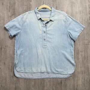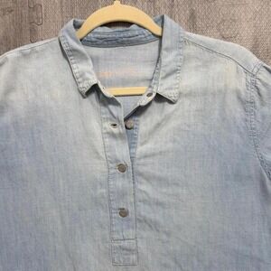 GAP Chambray Short Sleeve Collared Shirt Women's Large Light Wash Denim