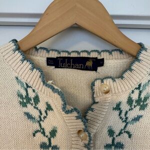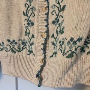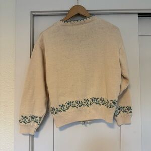Vintage Cream Cardigan with Green Embroidery Size Medium