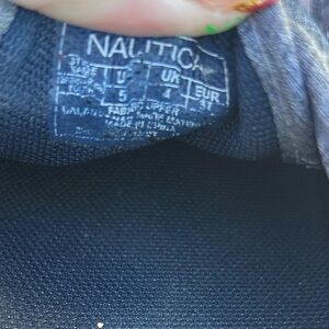 Nautica boat shoes in a sleek blue. Features lace-up design and white soles.