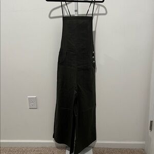 Stylish green wide-leg overalls. Perfect for casual wear. These Wide Leg Overalls in Olive Moss bring effortless style with a playful twist. Made from soft cotton, they feature comfy spaghetti straps and handy pockets for your essentials. Perfect for sunny days or casual outings, they combine comfort and fun in one easy outfit.