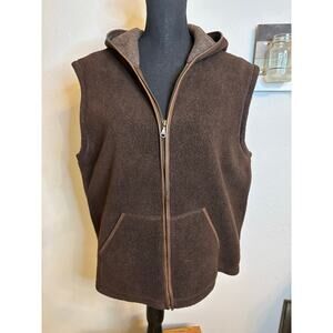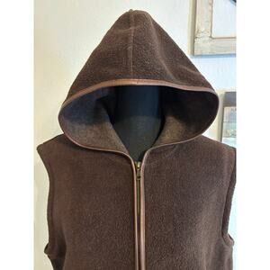 RALPH LAUREN Vintage Lauren Hooded Fleece Vest w Faux Leather Trim Wm Sz XL