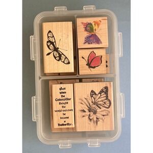 Butterflies & Ladybugs Wooden Block Rubber Stamps Lot of 13