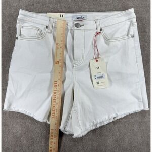 Arula Women's Size 14 White Denim Shorts High Rise 6.25" Inseam Raw Hem NWT