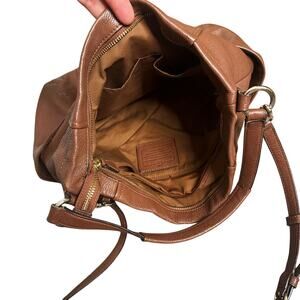 Stylish tan leather crossbody. Features a sleek design with an adjustable strap. Ideal for daily wear.