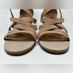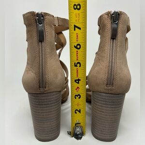 Franco Sarto Taupe/ Nude Strappy Block Heel Leather Sandal Size 8.5