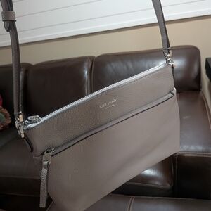 Chic light gray crossbody bag by Kate Spade. Features a sleek design with adjustable strap. Barely used like new and no stains.