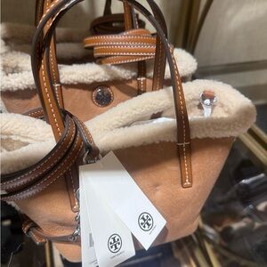 Tory Burch Shearling Mini Tote 170269 Taupe