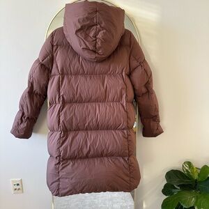 Warm duvet puffer in dark rust. Ideal for chilly days.
