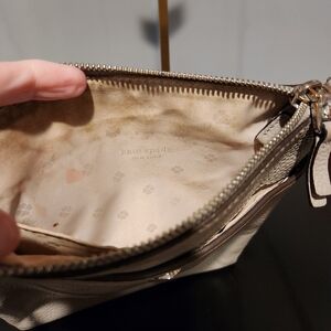 Chic Kate Spade crossbody in beige. Sleek and versatile design with adjustable strap, top zip and exterior pocket. Needs a heavy interior cleaning and does show minor exterior wear.