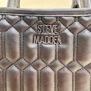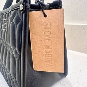 Stylish black quilted satchel by Steve Madden. Features sturdy handles and elegant design. Perfect for daily use.