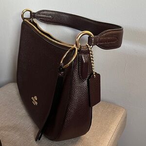 Sophisticated Coach shoulder bag in rich brown leather. Ideal for versatile styling.