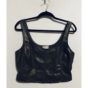 Altard State Top Womens Large Brown Vegan Leather Corset Crop Boho Festival