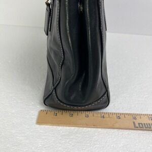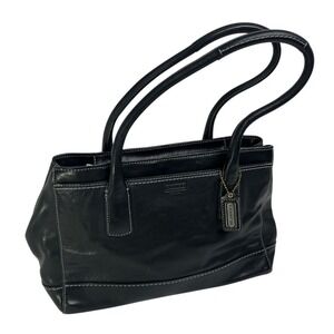 Keywords: Coach leather satchel, Black turnlock tote, Glove tanned leather, Classic Coach purse, Work handbag, Structured leather bag