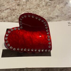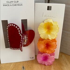 Set of hair claw clips. Red heart with Rhinestones and 3 flower clips. NWT