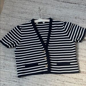 Massimo Dutti Striped Navy and White Short Sleeve Cardigan, Size Small