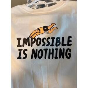 Back of the shirt displays a bold printed slogan: "IMPOSSIBLE IS NOTHING" with an accompanying graphic.