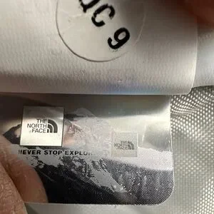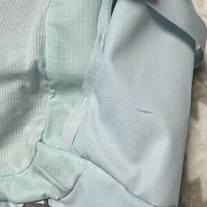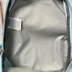 Sky blue backpack with The North Face logo. Features spacious compartments and adjustable straps.