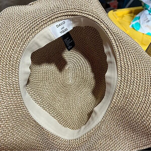 DAVID & YOUNG ~ Tan Paper ‘Beach Bum’ Beach Hat Gold Font. In good preowned condition.